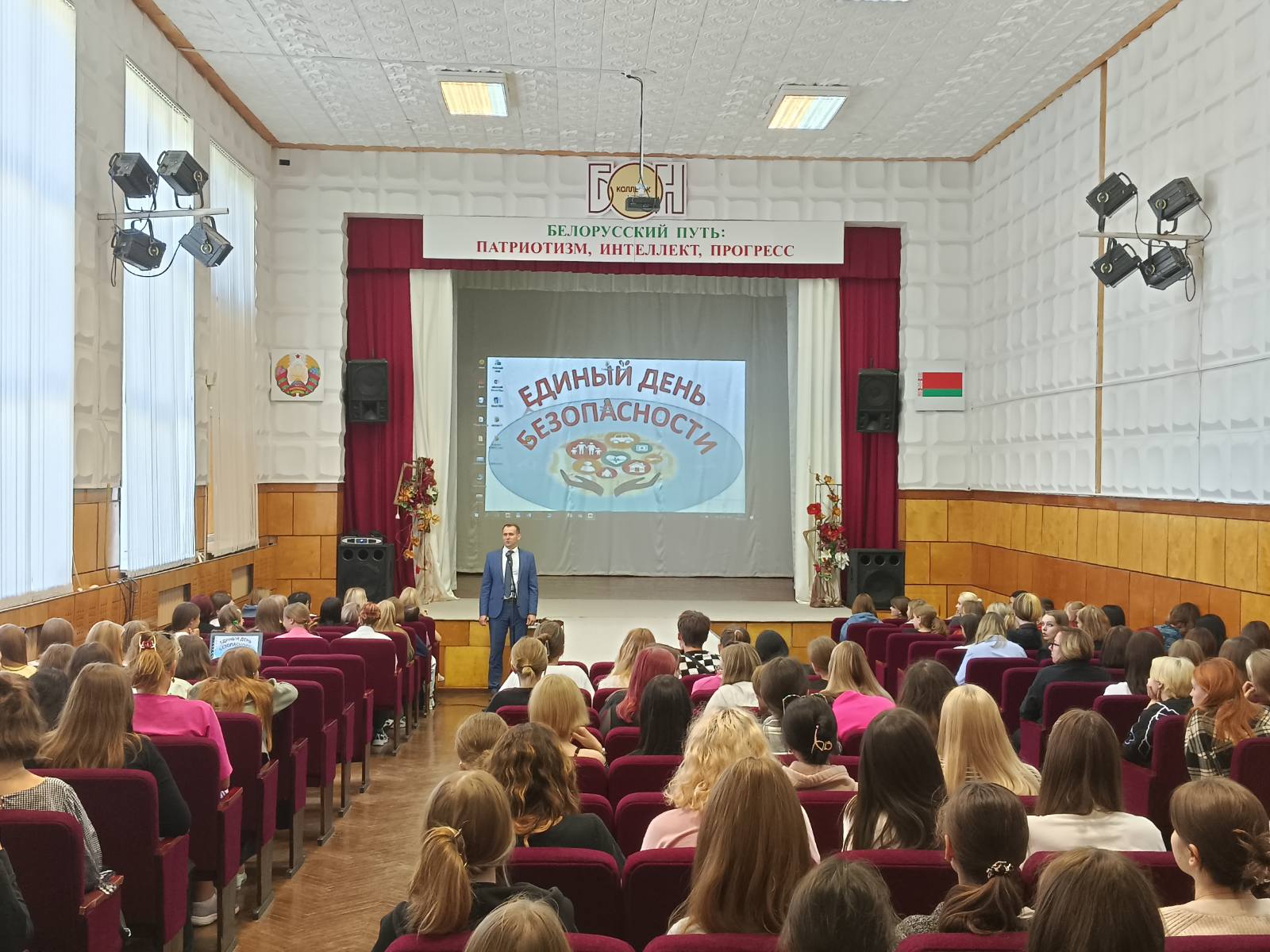 15.09.2023 в рамках Единого дня безопасности для учащихся 1-3 курсов прошли единые уроки безопасности. В ходе урока были обсуждены темы о безопасности в торговых центрах и общественных местах при возникновении чрезвычайных ситуаций, как не потеряться в лесу, вопросы оказания первой медицинской помощи.