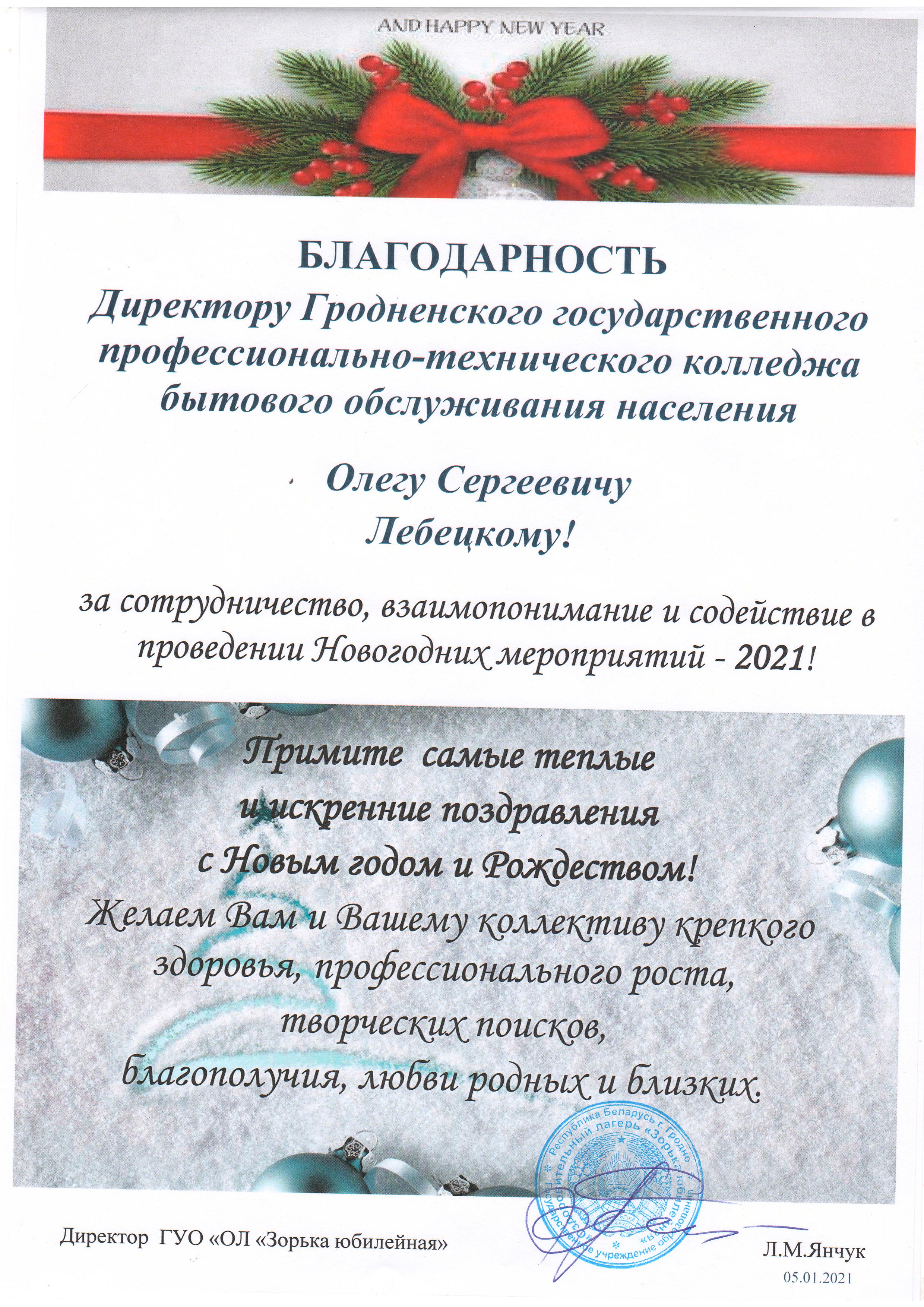 В декабре 2020 г. на базе ДОЛ «Зорька „Юбилейная» в рамках акции «Наши дети» для учащихся, победителей конкурсов, фестивалей и соревнований различного уровня при участии активистов нашего колледжа прошла развлекательная программа с участием Деда Мороза, и веселых сказочных героев.