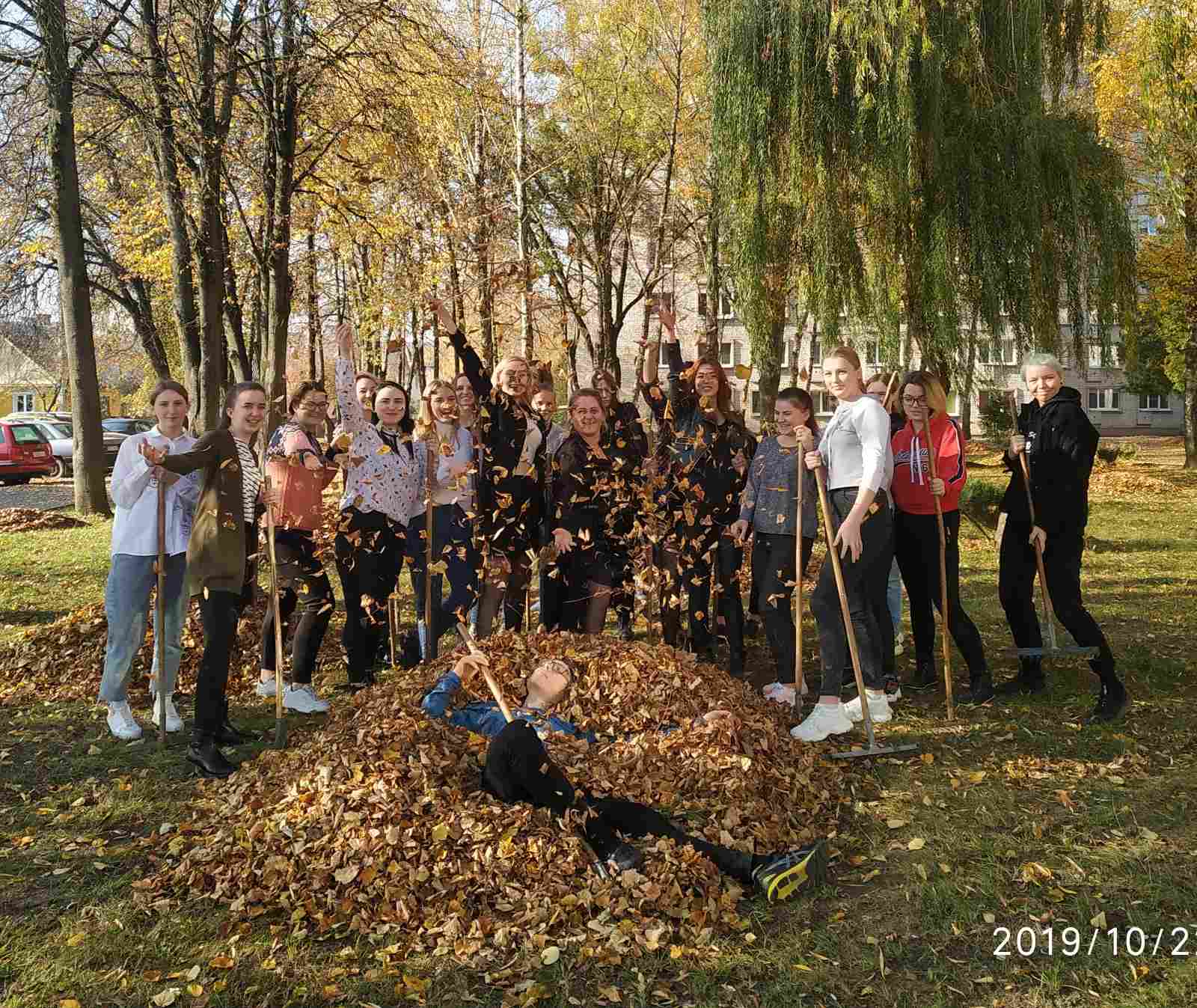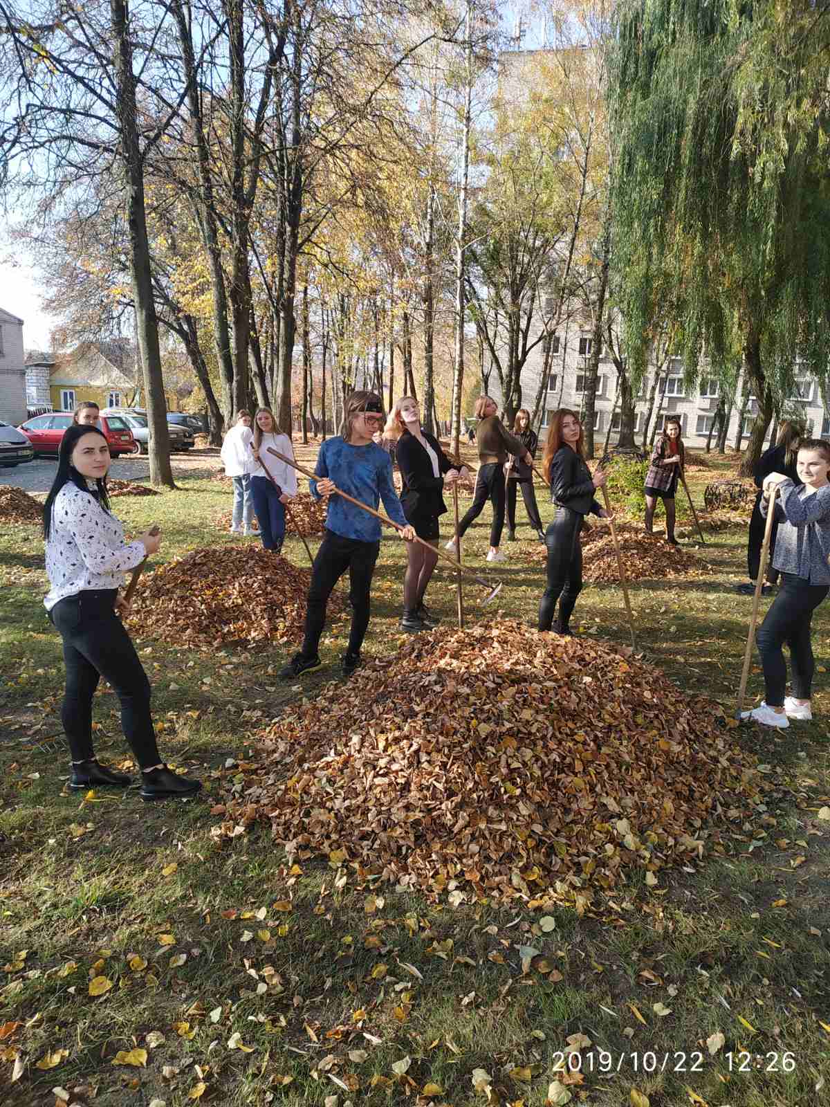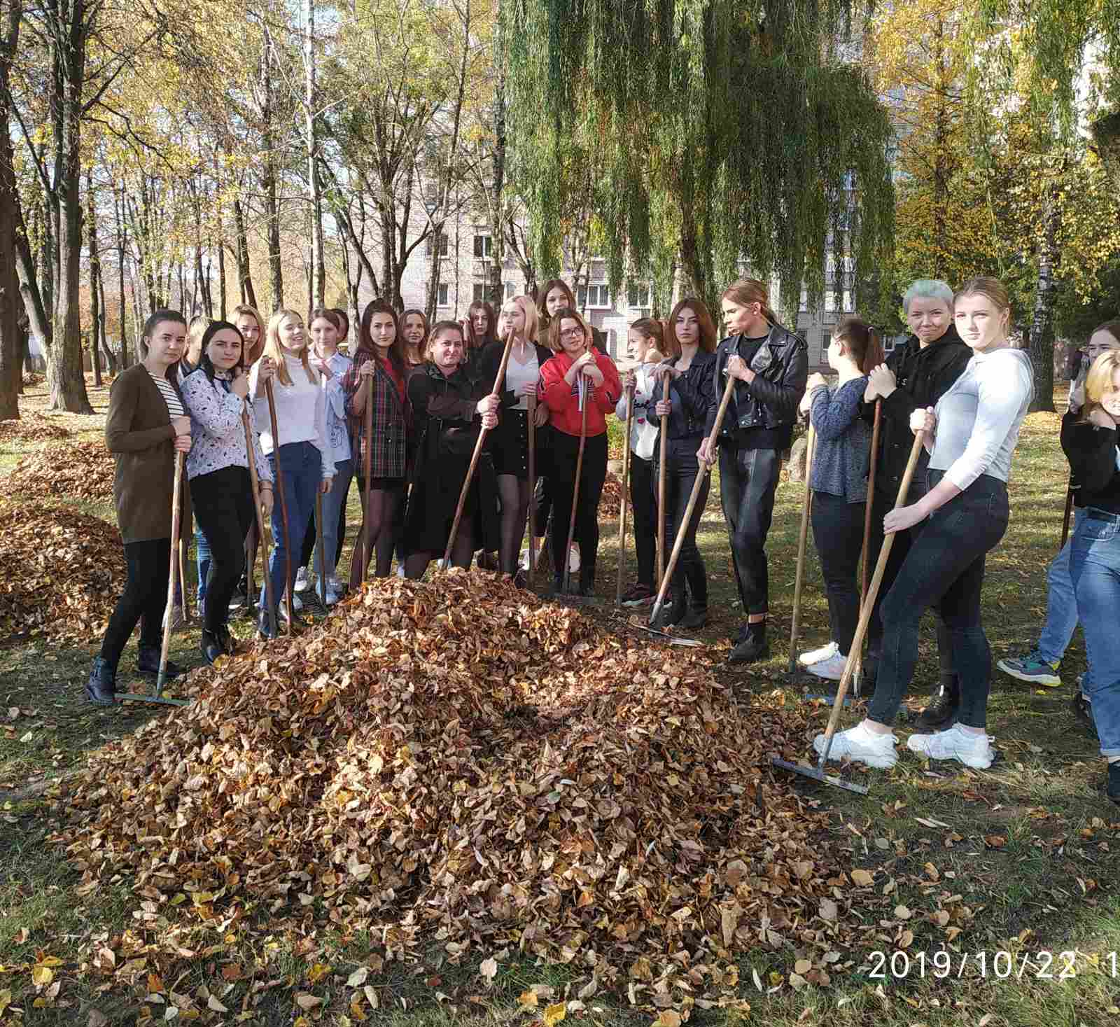 Вот и наступила золотая осень. Вся земля усыпана листвой. Хорошая солнечная погода и веселое настроение – это как раз то, что нужно для наведения порядка. В рамках колледжной акции по благоустройству территории колледжа и общежития, учащиеся группы 8ш/п вместе с мастерами производственного обучения Баталенок Е.В. и Матюк Е.В. дали старт работам по уборке листвы.
