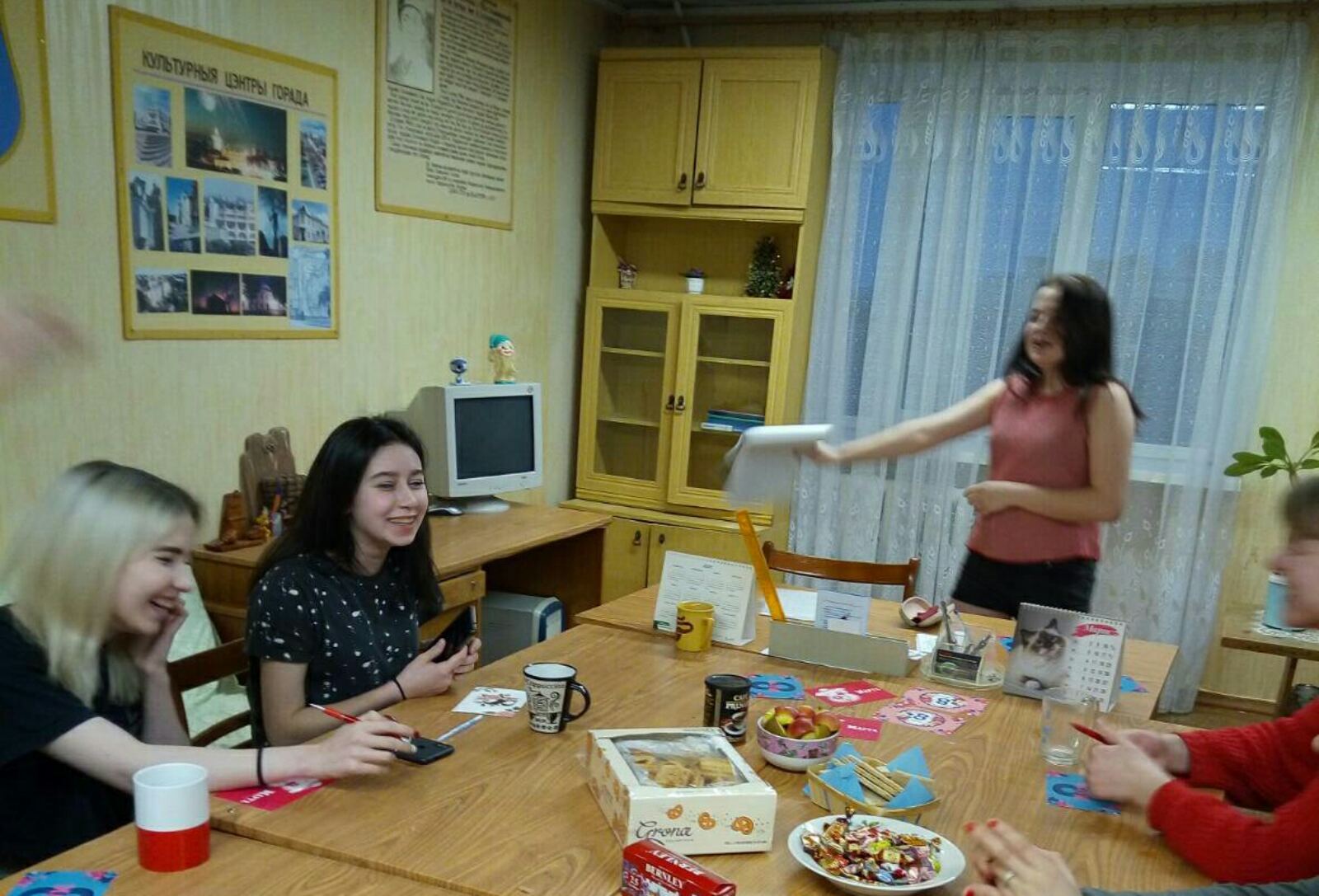В преддверии Международного женского дня 07.03.2020 года в общежитии колледжа прошла конкурсная программа “Остановись мгновенье, ты прекрасно”. В завершение программы учащиеся подписали поздравительные открытки.