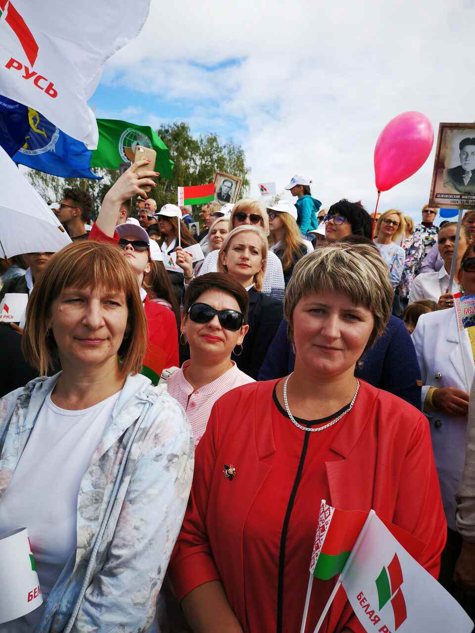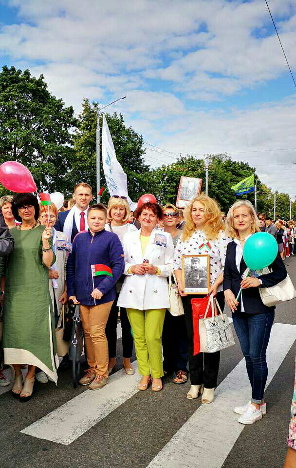 В этом году мы отмечаем 75-летие освобождения Беларуси от немецко-фашистских захватчиков, и эта дата проходит красной нитью через все события сегодняшнего дня. Наши родственники были участниками войны, прошли фронтовыми дорогами, каждый из нас, принявший почетное право участия в шествии колоны “Беларусь помнит” с гордостью за каждого ветерана нес портрет своих дедушек и бабушек, участников Великой Отечественной войны . Поэтому для каждого из нас День Независимости – особенный праздник.