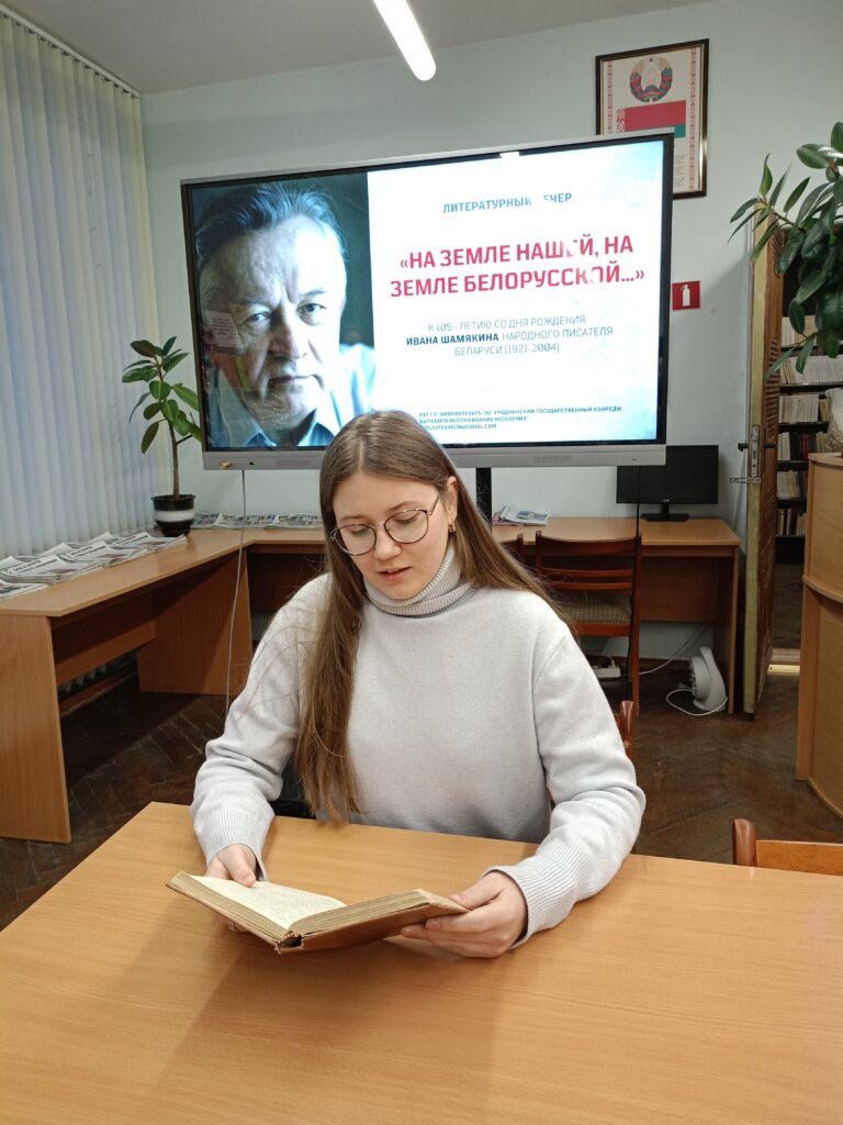 26 января в библиотеке колледжа прошел литературный вечер «На земле нашей, на земле белорусской…»к 105 – летию со дня рождения Ивана Шамякина, народного писателя Беларуси. Мероприятие подготовила Хут Т.Е., заведующий библиотекой. Были приглашены учащиеся 26 группы швея / парикмахер.