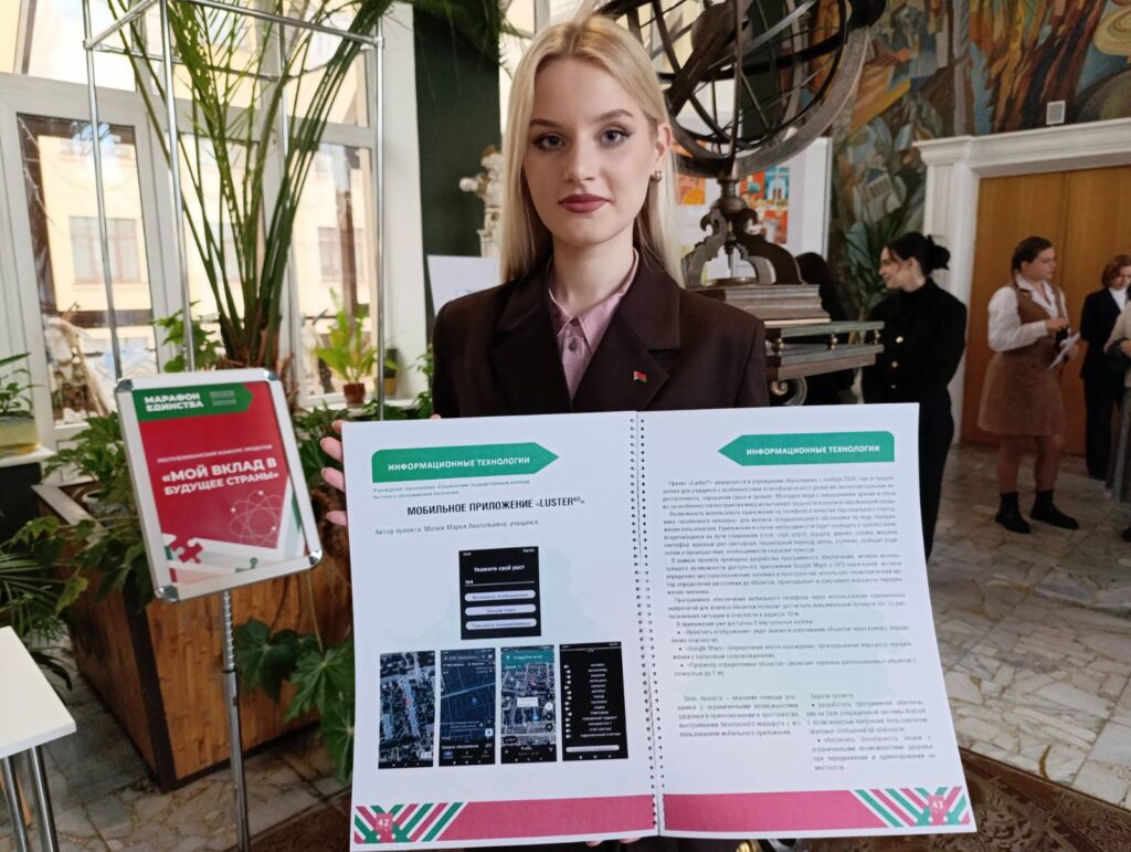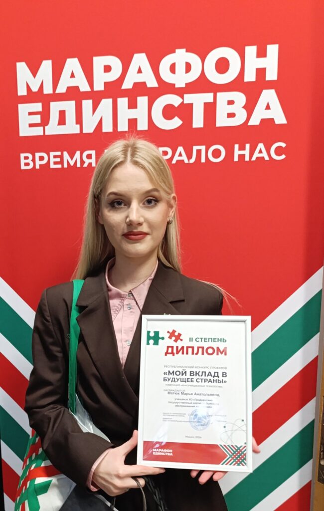 Сегодня, 22.01.2025 состоялось награждение победителей республиканского конкурса проектов “Мой вклад в будущее страны”, в рамках республиканской гражданско-патриотической акции ” Марафон единства”. По результатам конкурса работа “ЛюстэрКа” отмечена Дипломом II степени. Поздравляем творческую команду Понимасову А. Р., Бузмакову А. А. и учащуюся Матюк М. с победой!