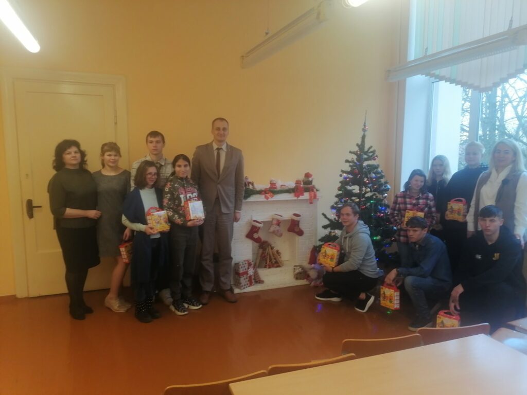 Совместно с председателем Гродненской областной организации Белорусского профсоюза работников местной промышленности и коммунально-бытовых предприятий А.М.Кардашом “сладкими” подарками поздравили наиболее нуждающихся учащихся нашего колледжа с наступающими новогодними праздниками.