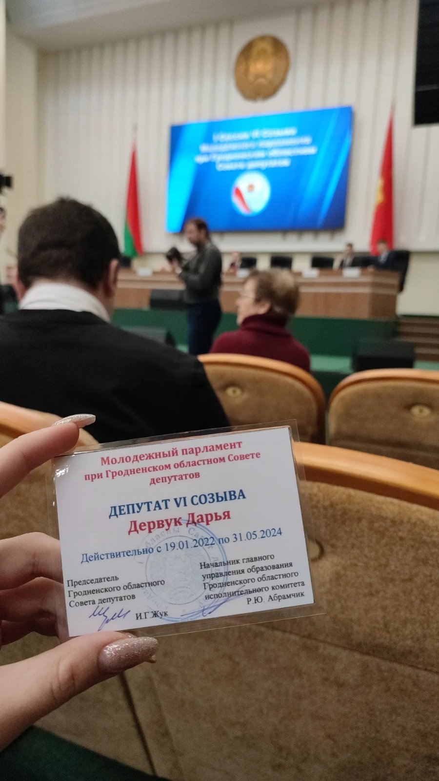 Сегодня, 21 января состоялось открытие I Сессии VI Созыва Молодежного парламента при Гродненском областном Совете депутатов, в котором принял участие депутат нашего колледжа Дервук Дарья, учащаяся группы 11пар/виз.