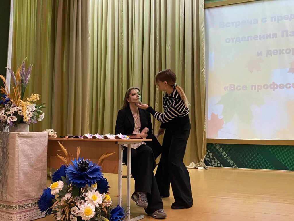 Учащиеся колледжа под руководством Ланденок М.М. провели мастер – классы по аквагримму и визажу в рамках профориентационного мероприятия «Все профессии нужны, все профессии важны» на базе СШ 40 им. Кремко г. Гродно