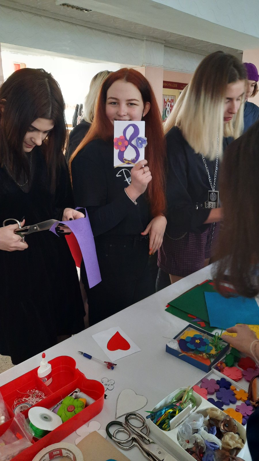 В преддверии 8 марта в колледже с самого утра начались торжественные мероприятия, приуроченные такому прекрасному празднику. Всех девушек и женщин встречали с поздравительной открыткой, оформленной прекрасной фотозоной. В течение дня работала творческая лаборатория “Теплом согревая мамино сердце”, по изготовлению авторских открыток. Была организована поздравительная почта, где все желающие смогли подписать и отправить открытки маме, бабушке, подруге и педагогам.