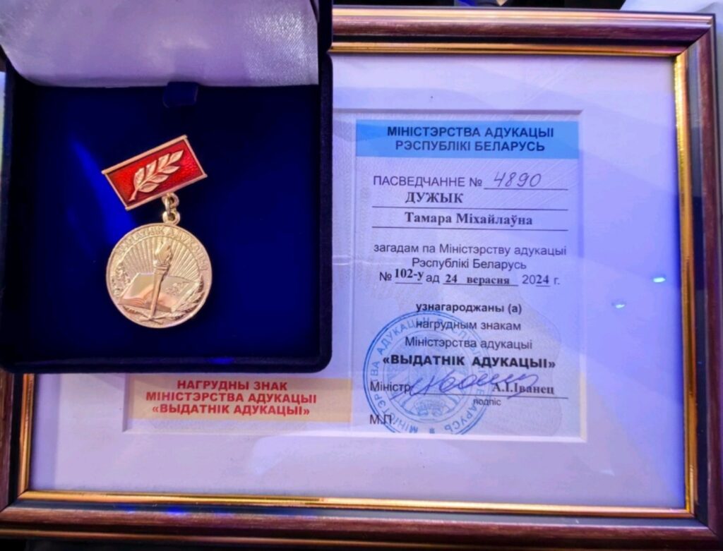 Поздравляем Тамару Михайловну Дужик с награждением нагрудным знаком “Отличник образования” Министерства образования Республики Беларусь !