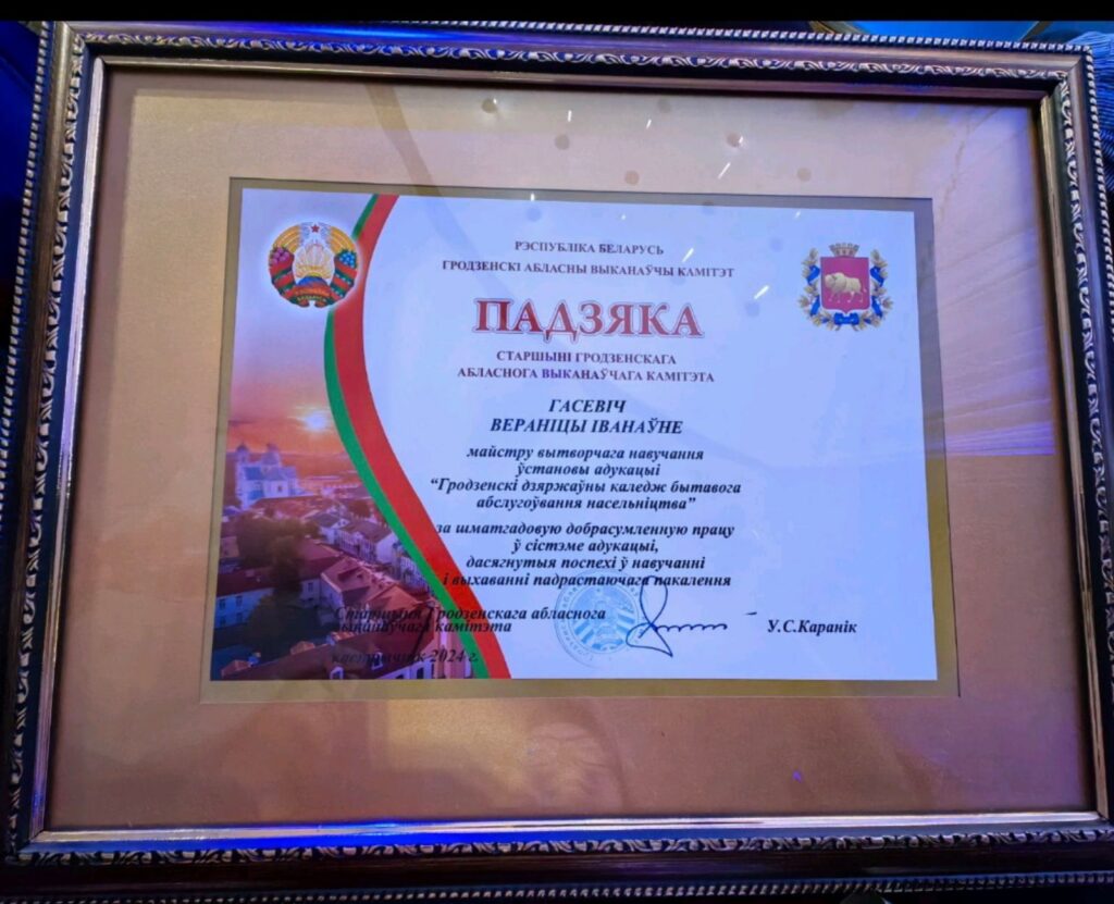Гасевич Веронику Ивановну с награждением Благодарственным письмо председателя Гродненского областного исполнительного комитета!