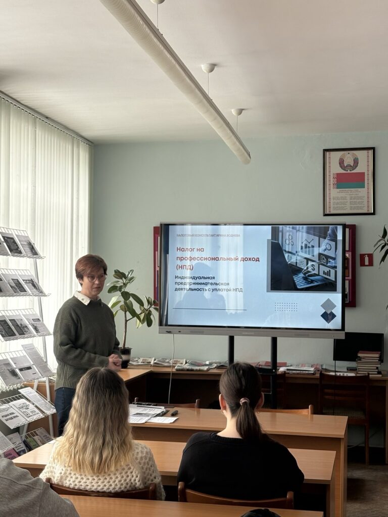 19.02.2026 учащиеся выпускных групп приняли участие в беседе – консультации “Будь достойным гражданином своей страны”. В мероприятии приняли участие представители налогового комитета администрации Ленинского района города Гродно. Были обсуждены вопросы об налогообложении на профессиональный доход (НПД).