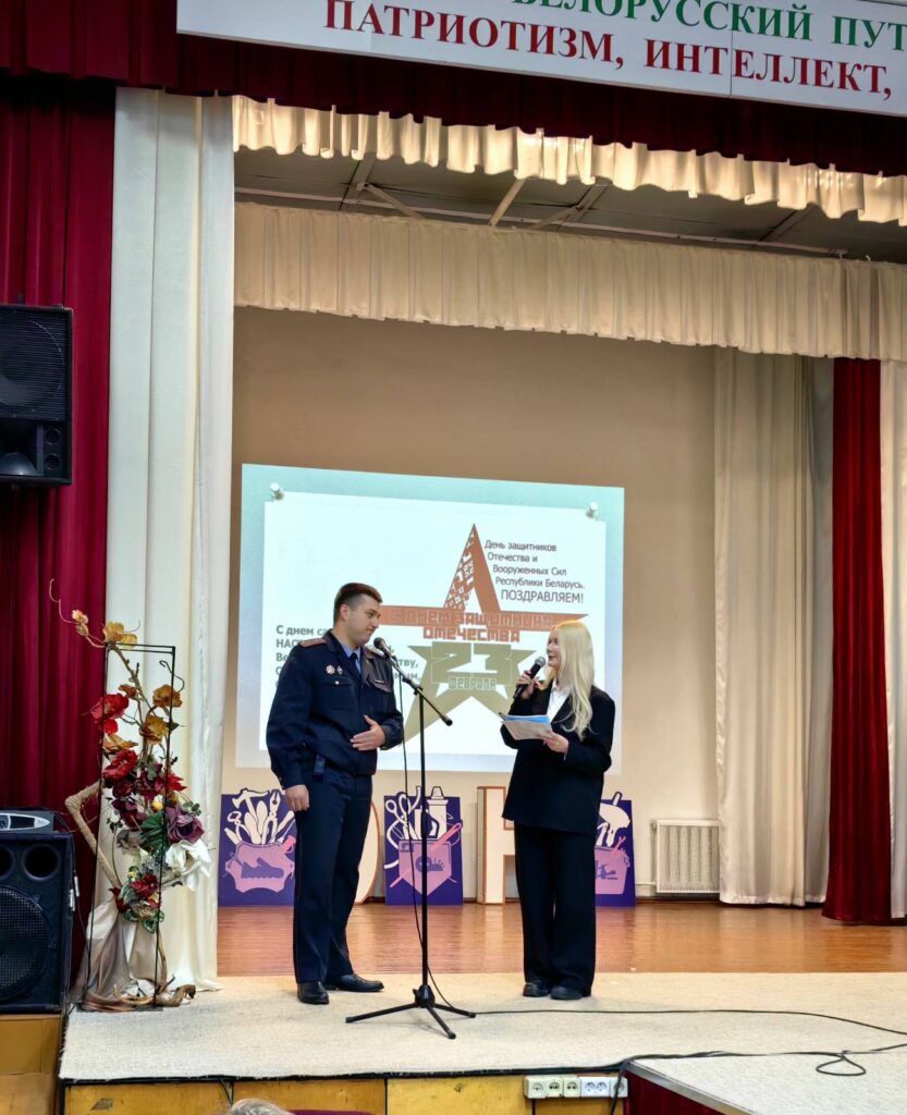 23.02.26. в колледже прошло мероприятие, приуроченное ко Дню защитника Отечества и Вооружённых сил Республики Беларусь “Родине служить- уклонистом не быть!”. Почетный гость – Александр Александрович Ахременя, участковый инспектор ИДН администрации Ленинского района города Гродно. В ходе мероприятия Александр Александрович принял участие в блиц – опросе о мужестве, любви к родине, Отечеству, профессии. Рассказал о том, что повлияло на выбор профессии, кто является для него примером в жизни, обратил внимание, что важно всегда оставаться честным и порядочным человеком.